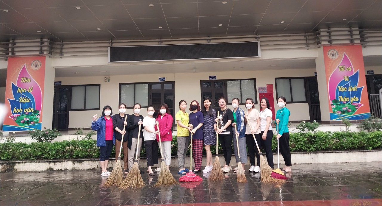Toàn thể cán bộ, giáo viên thực hiện việc quét dọn vệ sinh các khu vực sử dụng chung như: hành lang, sân trường, nhà vệ sinh giáo viên, nhà vệ sinh dành cho học sinh, lối đi lại,… Cắt tỉa, loại bỏ các cành cây gần phòng học tạo thông thoáng xung quanh khu vực học tập. Trong các phòng học, phòng làm việc và phòng chức năng được thầy cô tiến hành lau chùi bằng các dung dịch sát khuẩn trên các bề mặt bàn, ghế, bảng, tay cầm các cửa, đồ dùng dạy học, các phương tiện luyện tập thể dục thể thao, các phương tiện nghe nhìn phải đảm bảo các quy định về vệ sinh.
