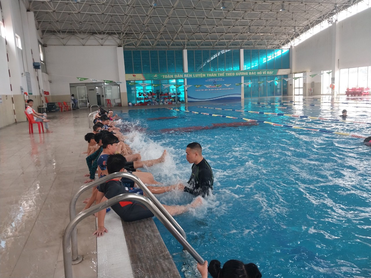 Trong quá trình học, các em được giáo viên phụ trách hướng dẫn nhiệt tình các nội dung như: khởi động, kĩ thuật tập làm nổi người; bám phao đập chân, tay, thở; kỹ năng tự phòng vệ tự cứu mình khi gặp tai nạn sông nước. Đối với các bạn học sinh đã biết bơi trung tâm phân lớp riêng để bồi dưỡng cho các em kĩ năng bơi nâng cao.