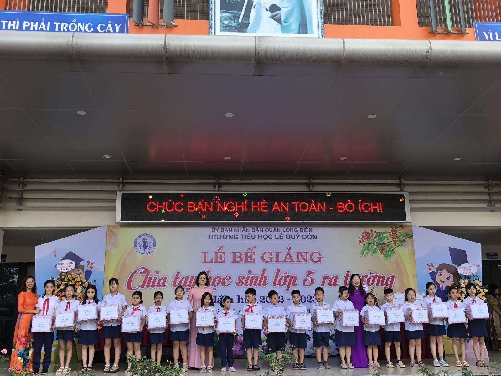 Thực hiện kế hoạch, nhiệm vụ năm học 2022-2023, sang ngày 25 tháng 5 năm 2023, Trường Tiểu học Lê Quý Đôn đã long trọng tổ chức lễ Tổng kết năm học 2022 – 2023, tuyên dương khen thưởng và lễ tri ân, trưởng thành cho học sinh khối 5. Dự lễ Bế giảng có các đồng chí lãnh đạo Đảng ủy, HĐND, UBND phường Phúc Lợi; Đại biểu các ban ngành đoàn thể, đại diện Phụ huynh; Ban Giám hiệu nhà trường cùng các em học sinh trong toàn trường.