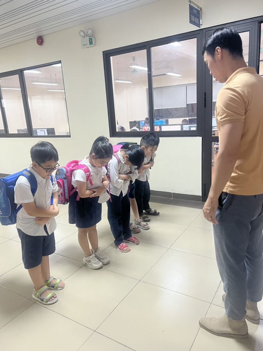 Học sinh chào thầy khi tan học