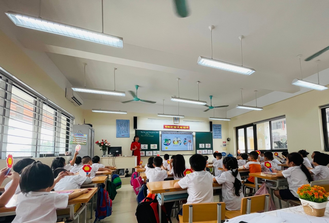 Thực hiện kế hoạch hoạt động chuyên môn của nhà trường, ngày 7/11/2022, tổ chuyên môn khối 1 đã thực hiện thành công tiết chuyên đề cấp trường môn Đạo đức với mục đích giúp các giáo viên có hình dung cụ thể hơn về phương pháp, hình thức tổ chức và các kĩ thuật dạy học tích cực vào dạy học.Tiết dạy do cô giáo Bùi Thị Lan Anh – là giáo viên chủ nhiệm lớp 1A5 thực hiện với bài: “Đi học đúng giờ”.Tham dự chuyên đề có sự hiện diện của các đồng chí trong Ban Giám hiệu nhà trường cùng các đồng chí là giáo viên các lớp 1 trong trường.