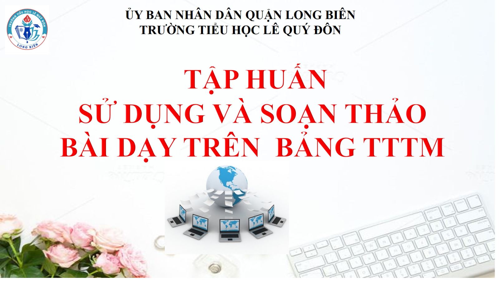 Thực hiện kế hoạch bồi dưỡng thường xuyên của trường Tiểu học Lê Quý Đôn, đúng 14h00 ngày 28/10/2021 toàn thể 100% CBGVNV có mặt tại phòng Khoa học - Công nghệ để tham gia tập huấn sử dụng bảng TTTM. Buổi tập huấn gồm 3 nội dung: