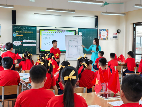 Chiều ngày 17/4/2025, lớp 4A4 Trường Tiểu học Lê Quý Đôn đã có một tiết Toán cực kỳ sôi động và đáng nhớ về "Phép nhân phân số" do cô giáo Vũ Hương Ly giảng dạy.