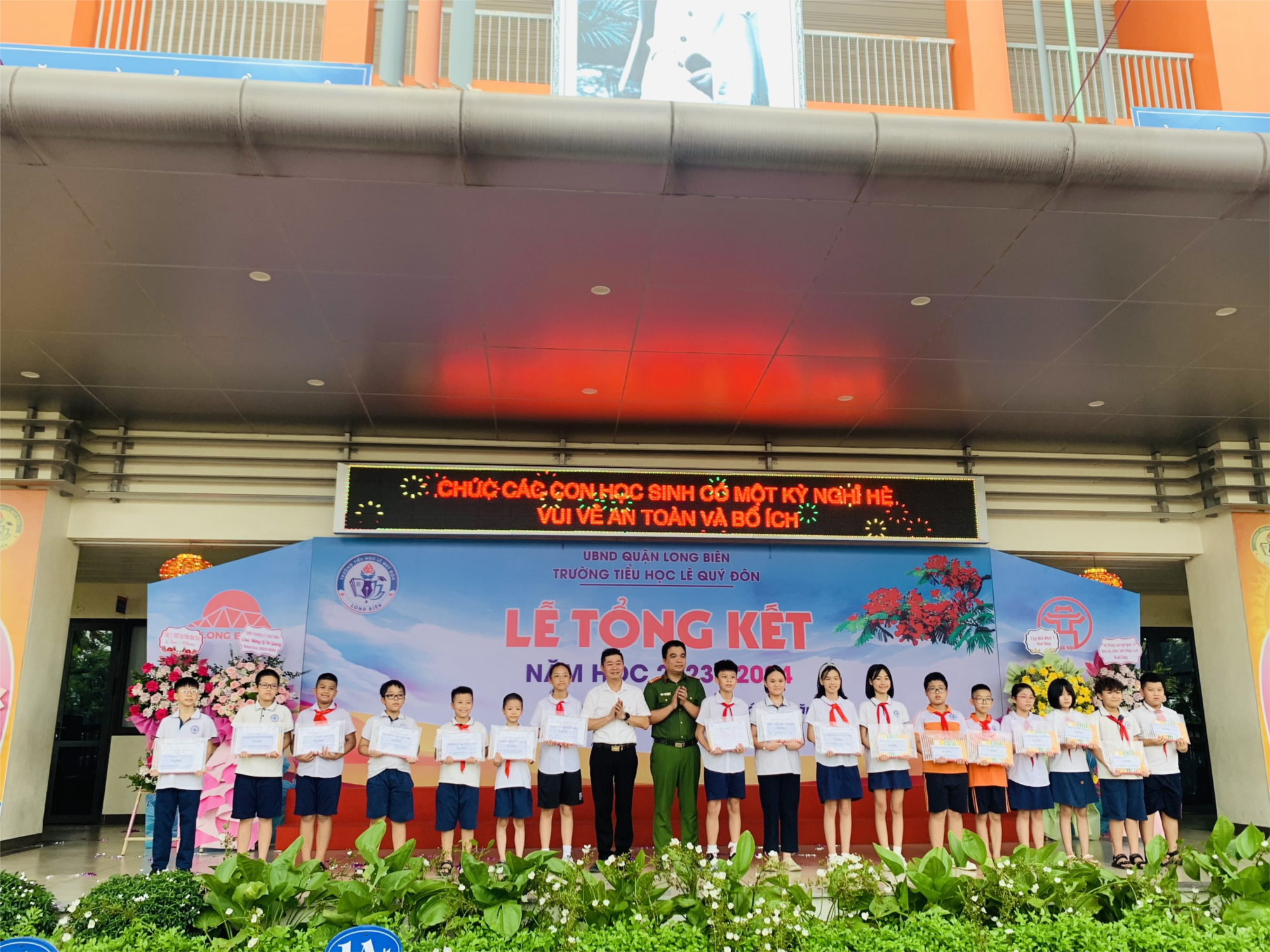 Năm học 2023 – 2024 đã khép lại với niềm vui, nỗi buồn và cả tiếc nuối...Trong sân trường rực rỡ sắc đỏ thắm của cây phượng dưới ánh nắng chói chang trong những ngày vào hạ. Mùa hè đến cũng là khoảng thời gian nói lời chia tay của tuổi học trò với thầy cô, bạn bè, với mái trường yêu dấu. Trong niềm phấn khởi, hân hoan xen lẫn bồi hồi, sáng ngày 28/05/2024 trường TH Lê Quý Đôn long trọng tổ chức Lễ Tổng kết năm học 2023-2024.